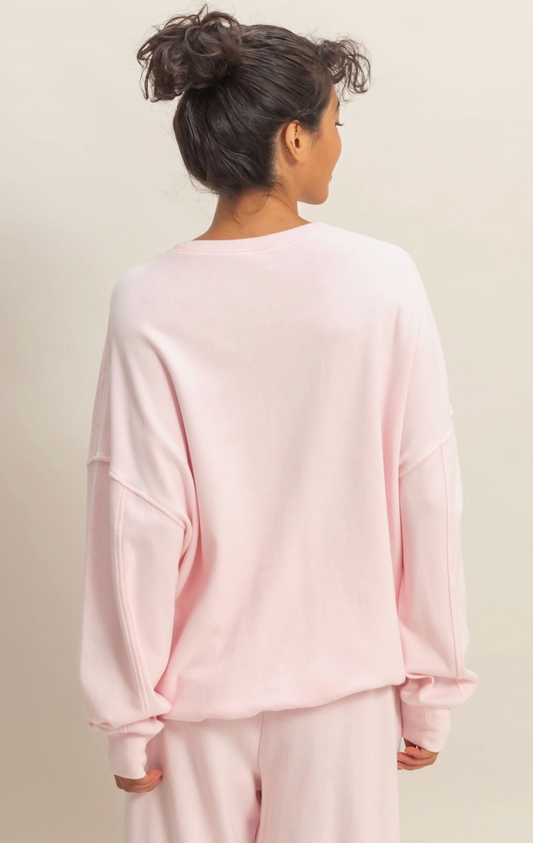 Laid Back Oversized Sweatshirt - Baby Pink