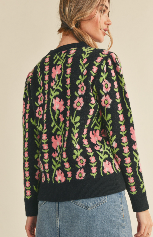 Poetic Floral Pullover Sweater - Black - FINAL SALE