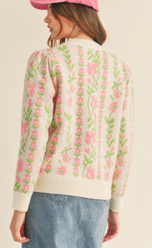 Poetic Floral Pullover Sweater - Cream