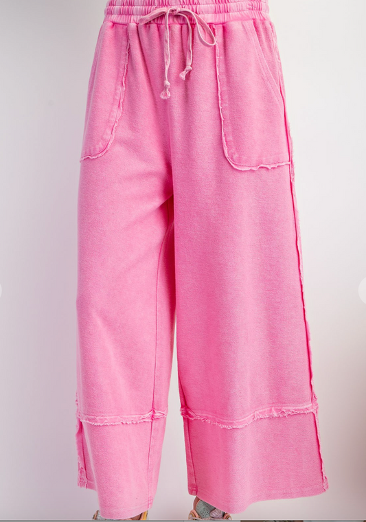 Beachcomber Terry Knit Palazzo Pants - Peony Pink