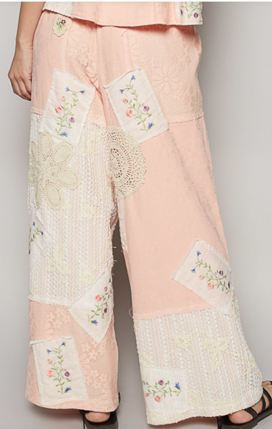 Boho Bliss Patchwork Pants - Peachy Pink
