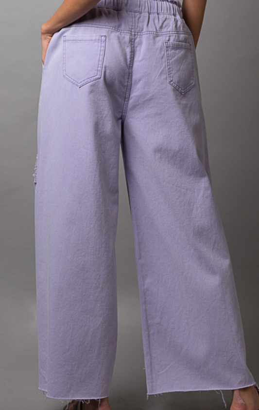 Good Feels Distressed Denim Pants - Lavender