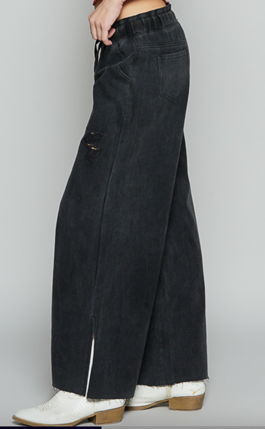 Good Feels Distressed Denim Pants - Washed Black