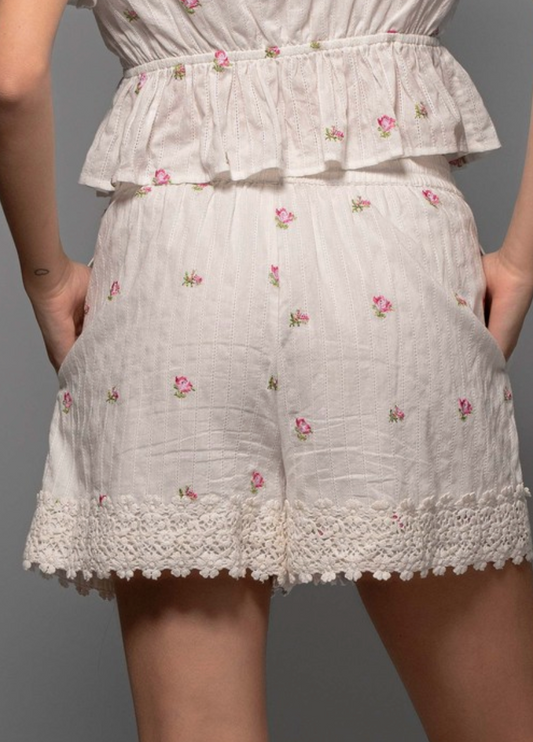 In Bloom Rose Embroidered Shorts