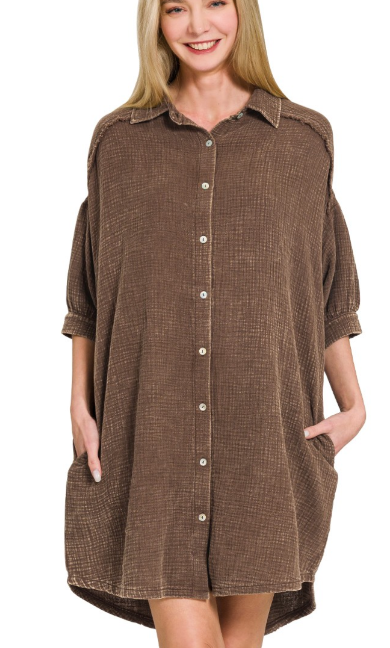 Effortless Shirt Dress - Chocolate - FINAL SALE