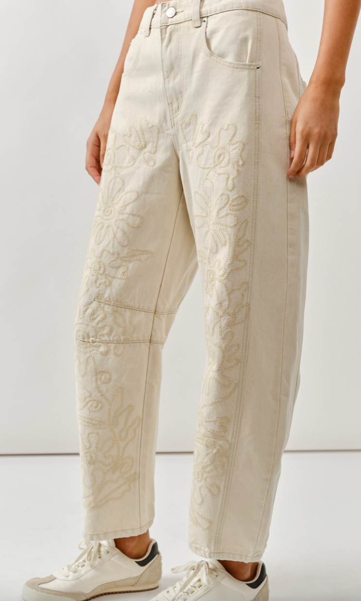 Embroidered Barrel Jeans