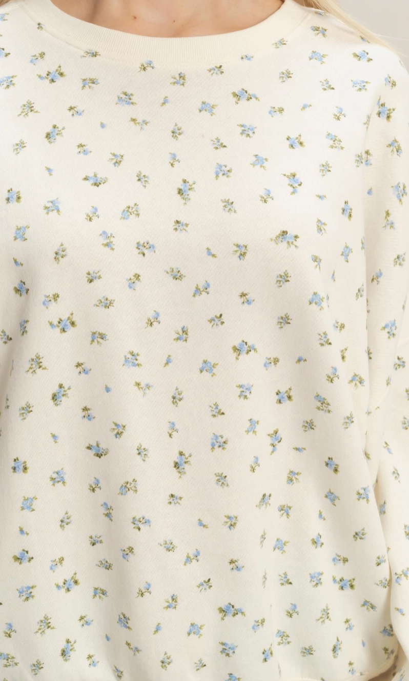 Laid Back Ditsy Floral Sweatshirt- Blue