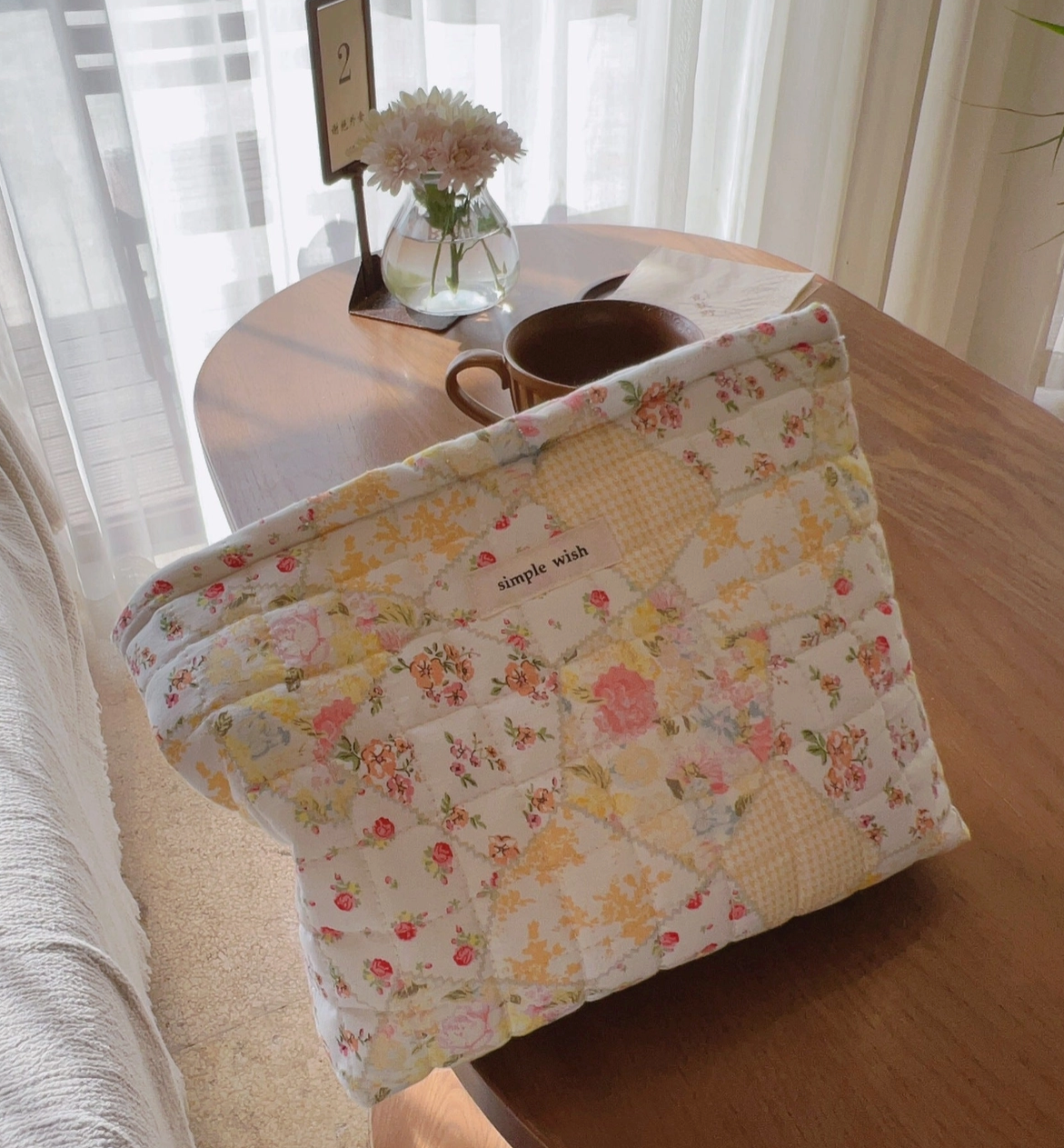 Quilted Floral Cosmetic Bag - Yellow